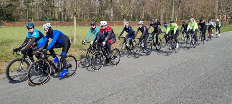 sommigen vonden de groep te groot, maar niettegenstaande de grote groep verliep alles volgens de regels. De snelheid, inhouden na de bochten, doorgeven bij hindernissen of gevaren. Wij doen verder op deze manier, ieder sportieve deelnemer blijft welkom.