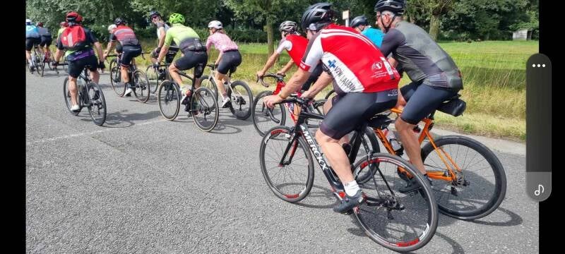 door het mooie fietsweer, de rit verlengd met een lus langs de ijzer tot 100km