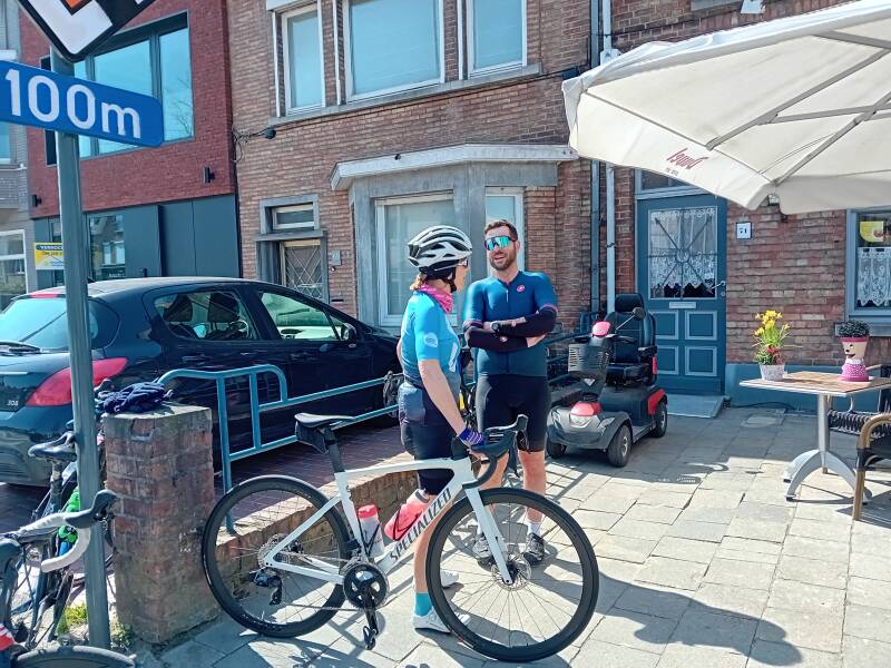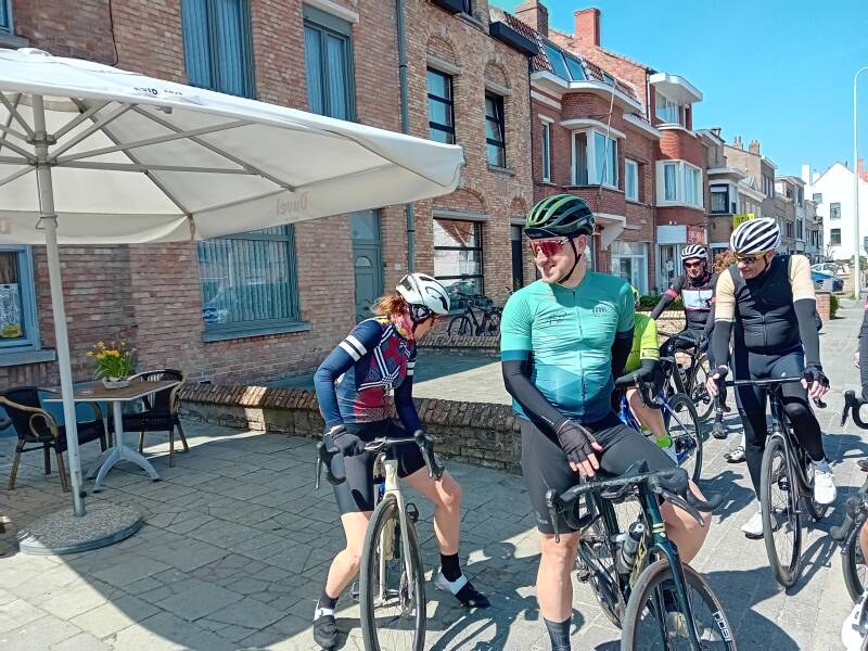 foto boven: drie brugse cyclo's genieten van de tussenstop.
