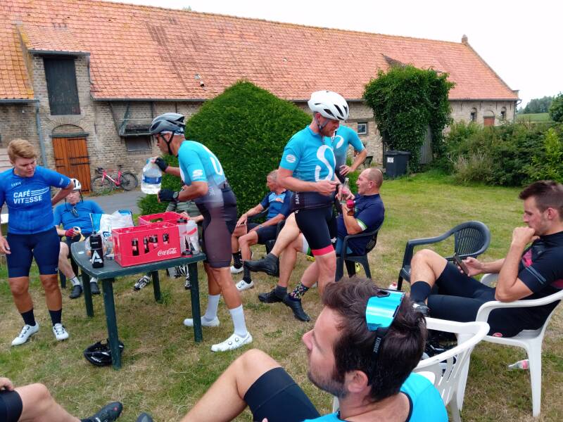 't was lastig, de gekoelde dranken op de tussenstop boerderij Laleman deden enorm deugd.
